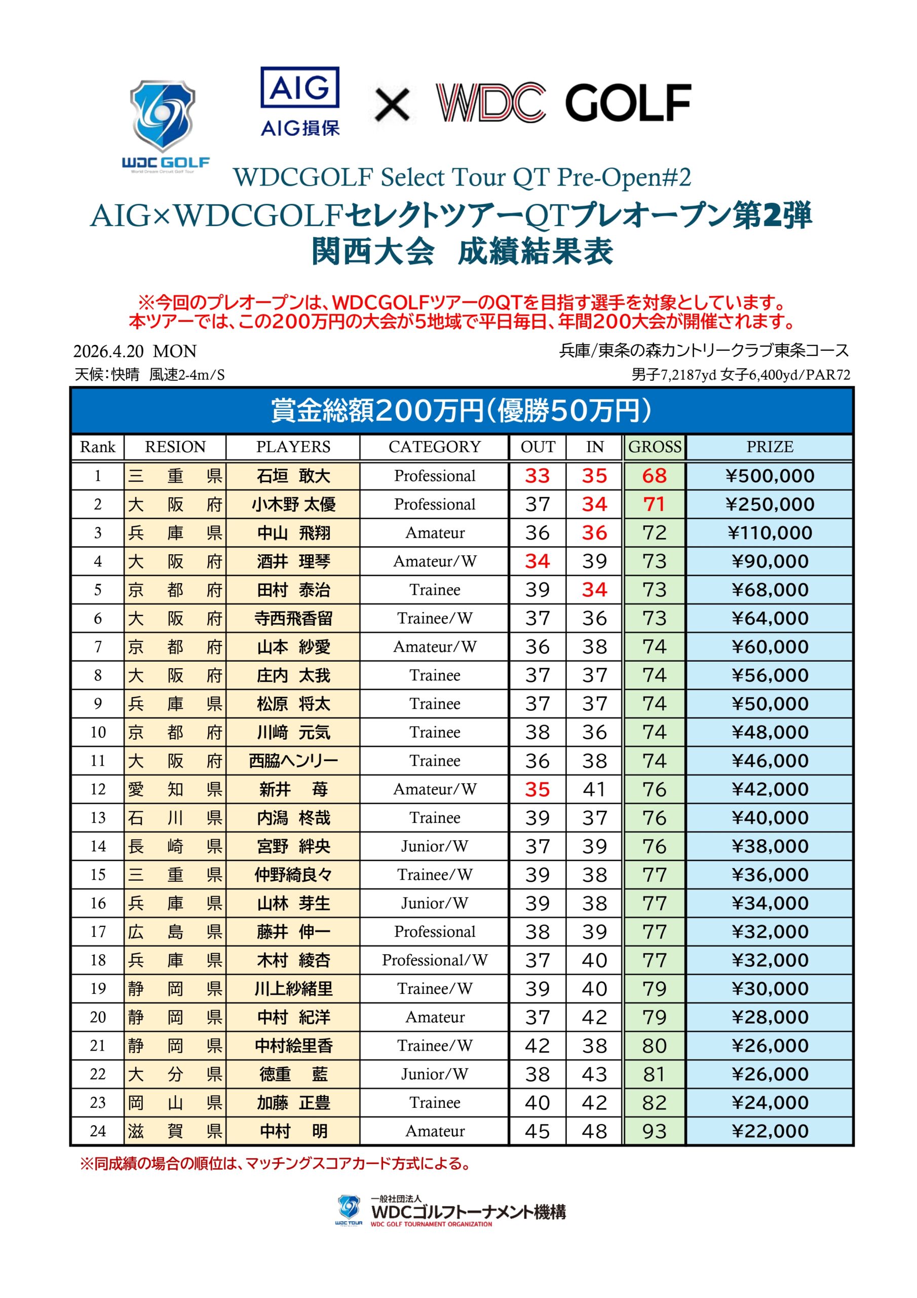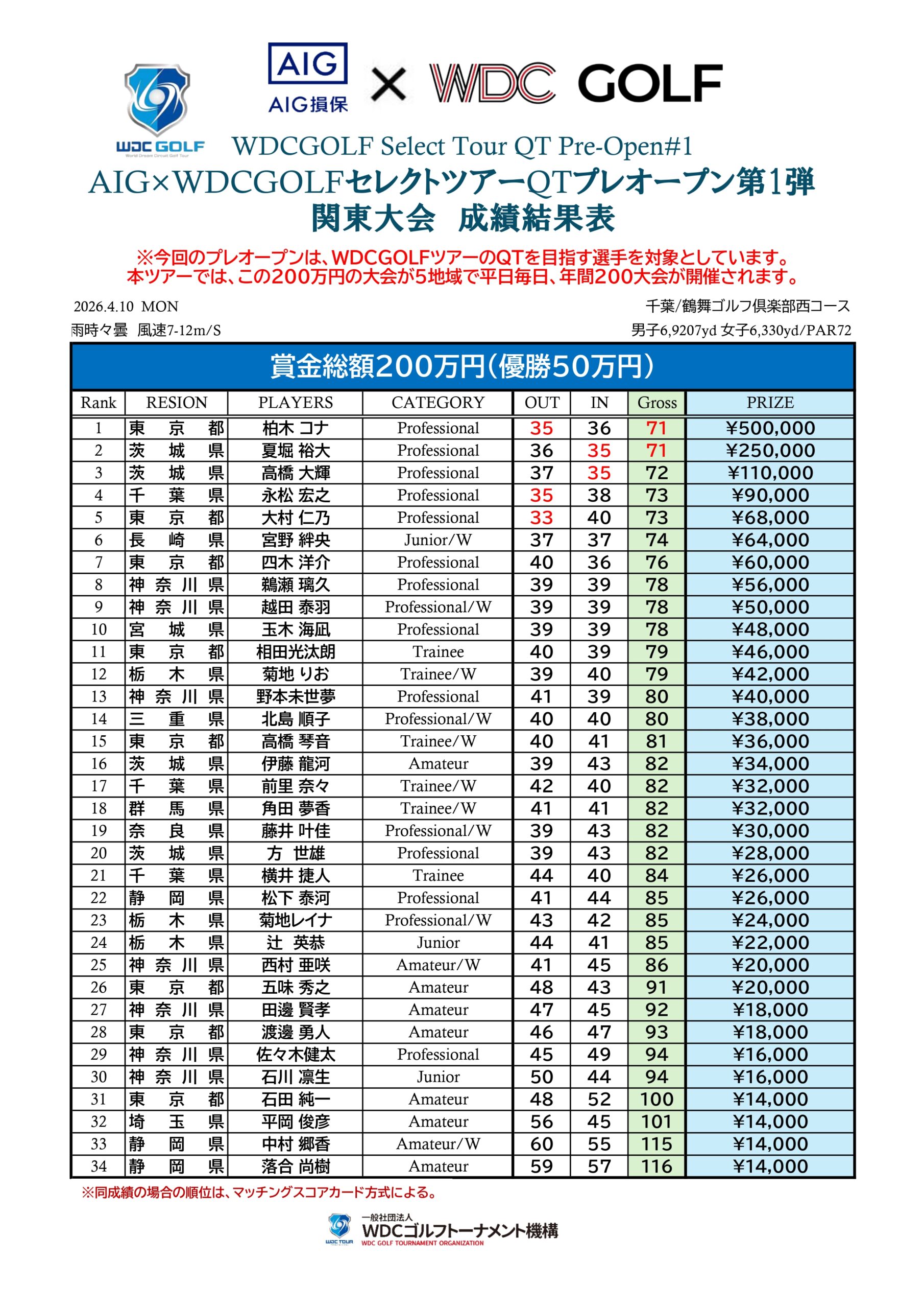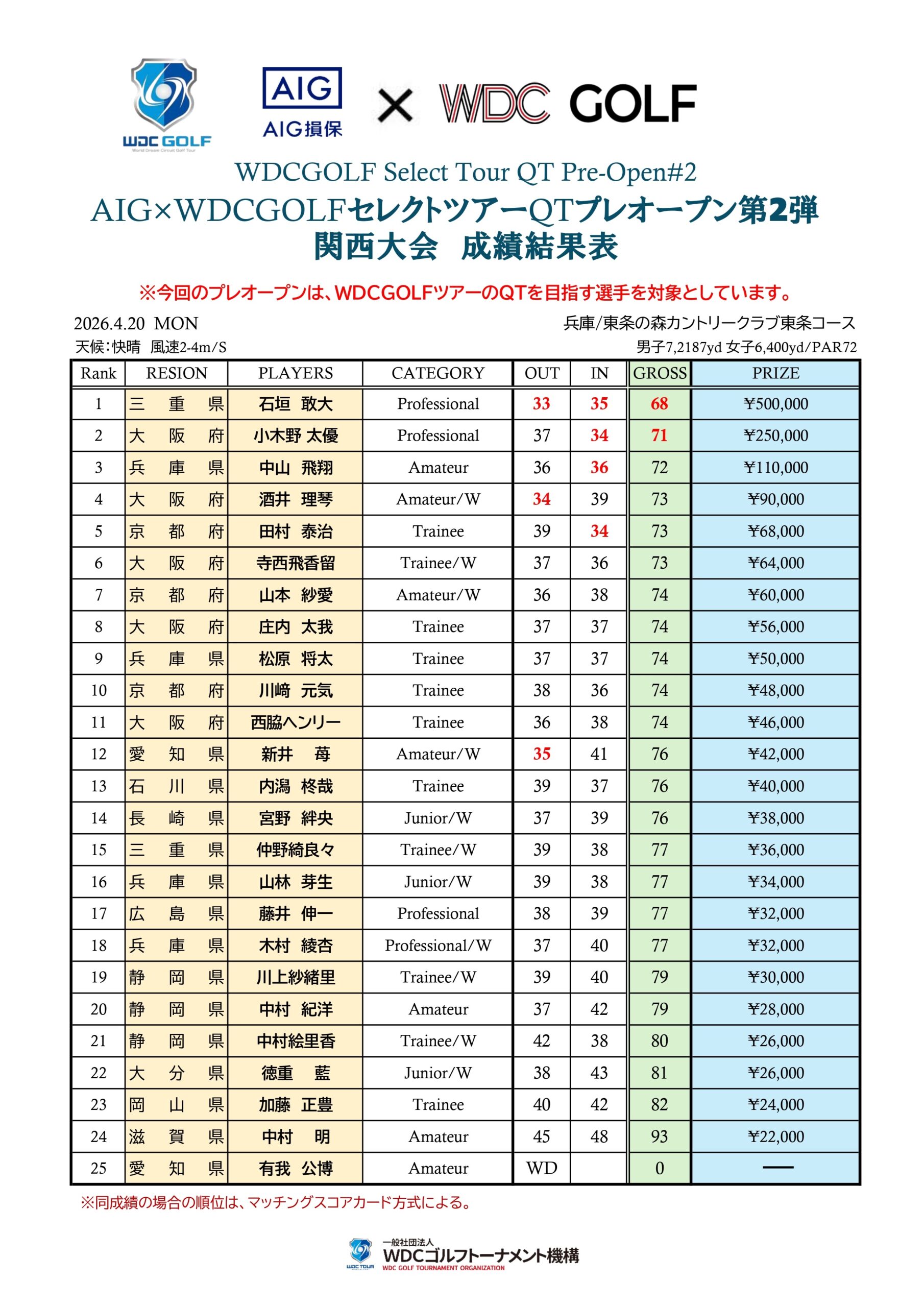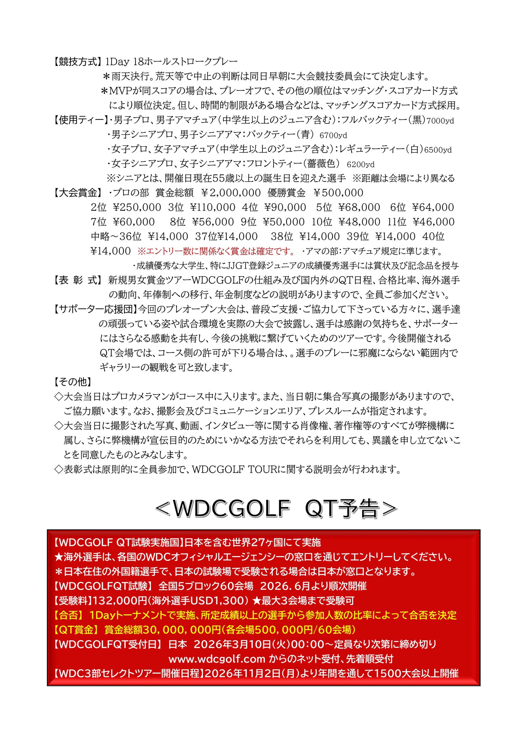 成績上位者にはQT賞金も支給され挑戦そのものが価値となるWDCGOLFの原点とも言える選抜大会です。