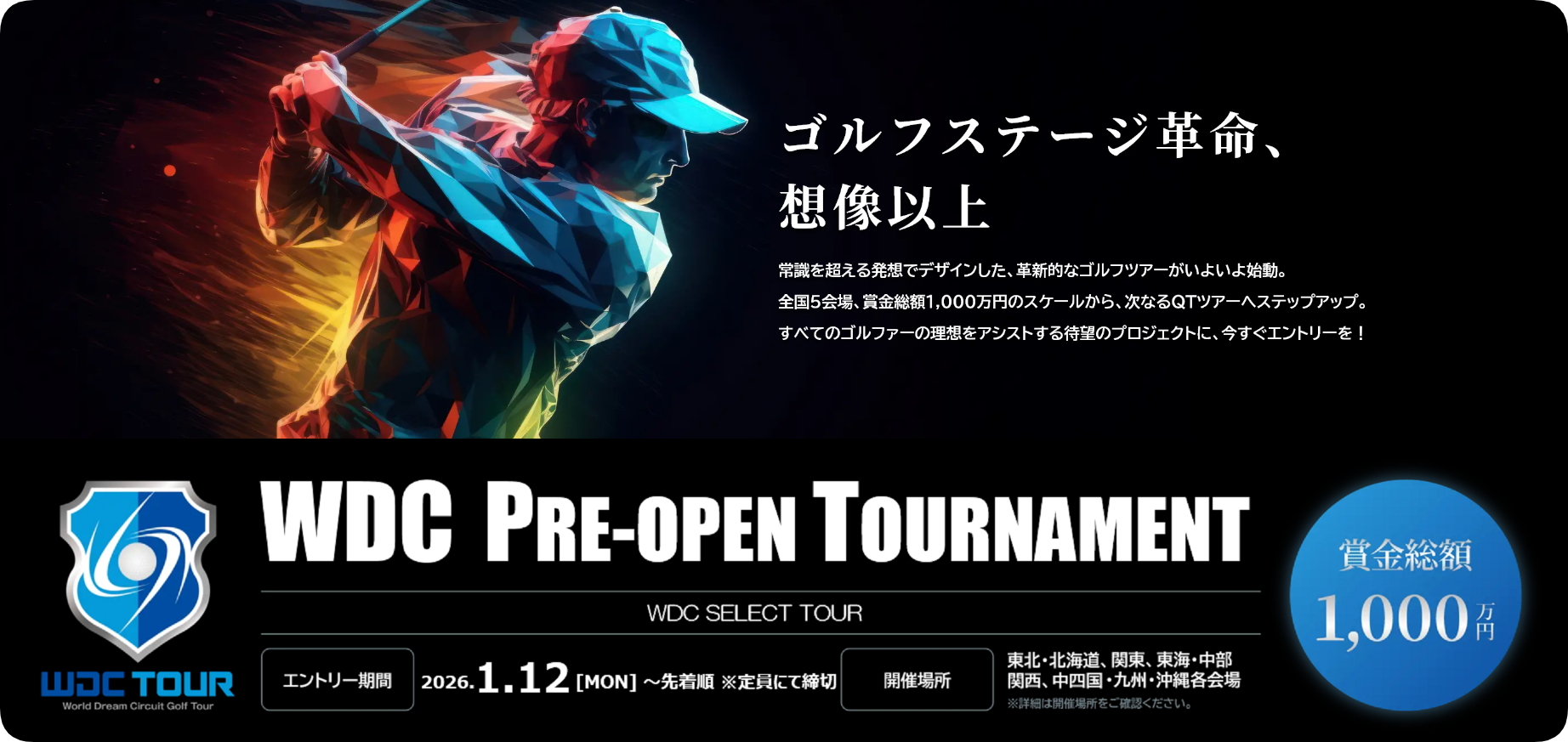 最短1日でWDCGOLF本ツアー1,500大会の出場資格を獲得できるため、チャンスはスピーディーかつ明確。